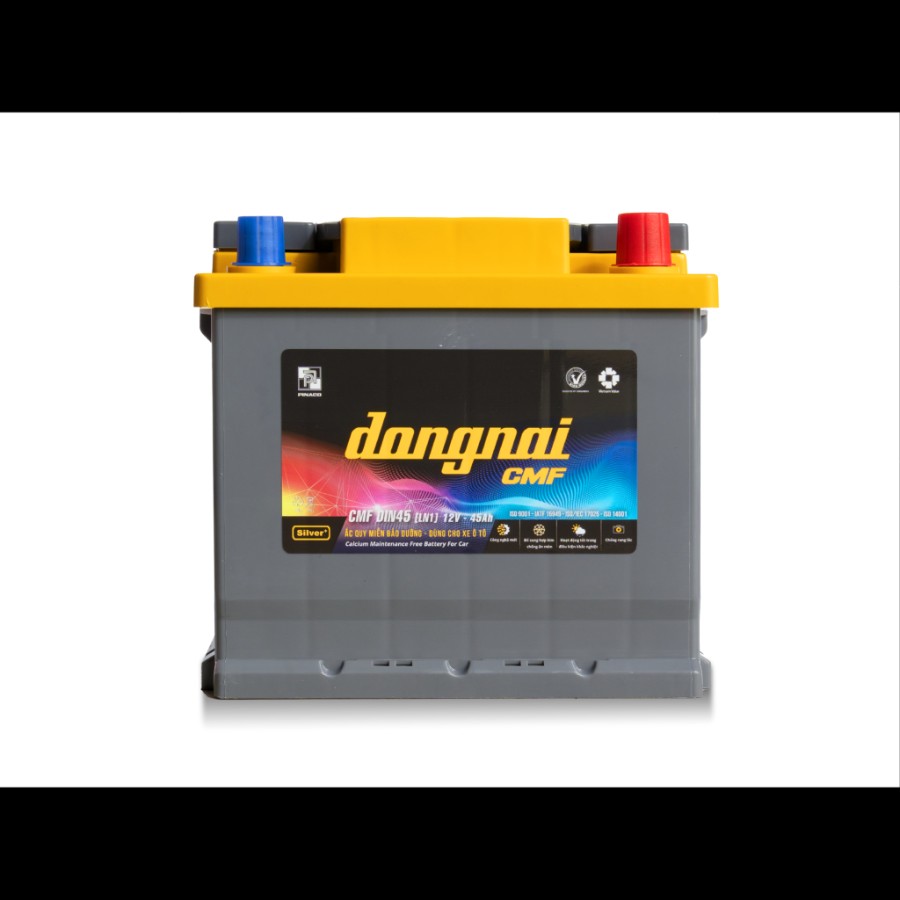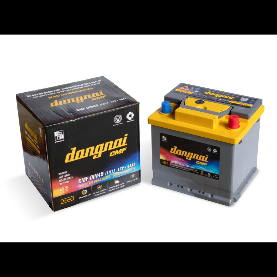 Ắc quy khô miễn bảo dưỡng Đồng Nai CMF DIN45 [LN1] – 12V – 45Ah là dòng sản phẩm được thiết kế theo tiêu chuẩn DIN châu Âu, phù hợp với nhiều mẫu xe phổ biến tại thị trường Việt Nam. Với công nghệ sản xuất hiện đại, hợp kim chì Canxi chất lượng cao và khả năng vận hành ổn định trong điều kiện khí hậu nóng ẩm, đây là lựa chọn được nhiều chủ xe tin dùng.