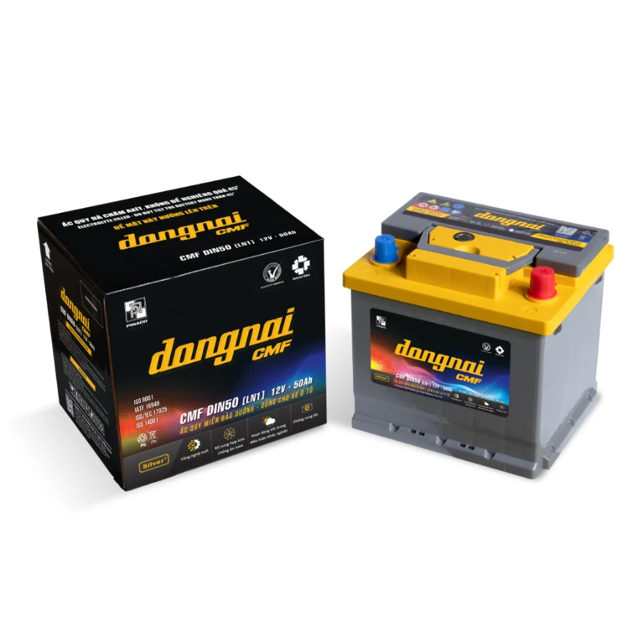 Ắc quy khô miễn bảo dưỡng Đồng Nai CMF DIN50 [LN1] – 12V – 50Ah là dòng ắc quy được thiết kế theo tiêu chuẩn DIN châu Âu, dung lượng phù hợp với nhiều mẫu xe phổ biến tại Việt Nam. Sản phẩm nổi bật với công nghệ sản xuất hiện đại, hợp kim chì Canxi chất lượng cao, khả năng vận hành ổn định trong điều kiện khí hậu nóng ẩm và đặc biệt không cần bảo dưỡng trong suốt quá trình sử dụng.